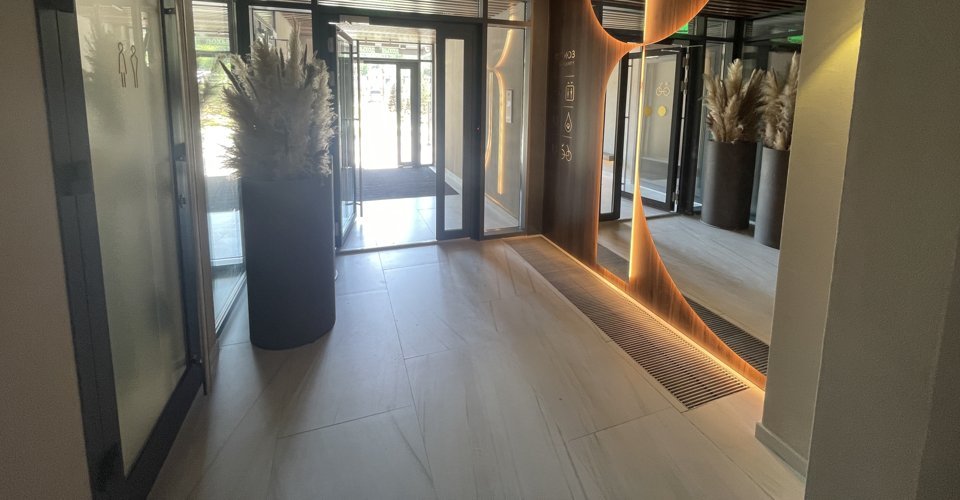 Облик фасада комплекса создается декоративным камнем и элементами из композитных панелей. Они придают яркий характер и особенный рельеф фактуры.