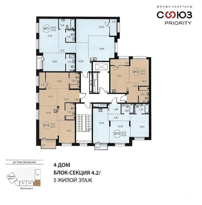Площадь от 42 м2