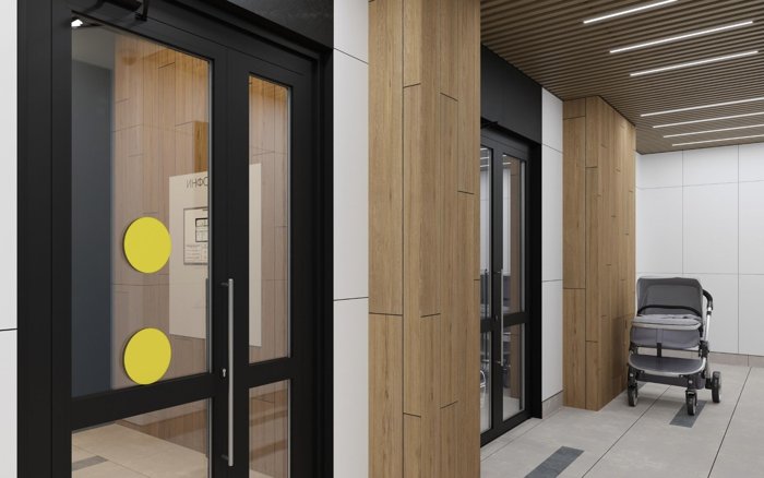 Яркие акценты в дизайне делают жилой комплекс привлекательным и нескучным местом для жизни.